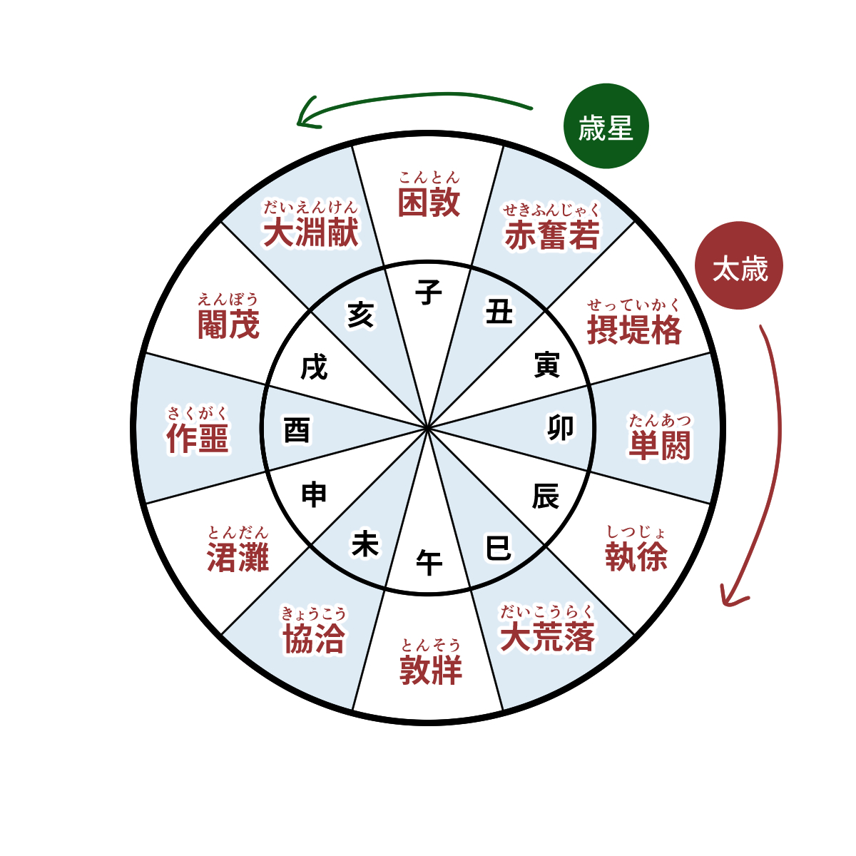時計回りの十二辰と反時計回りの歳星さんが混在しててこれはちょっとよろしくない。