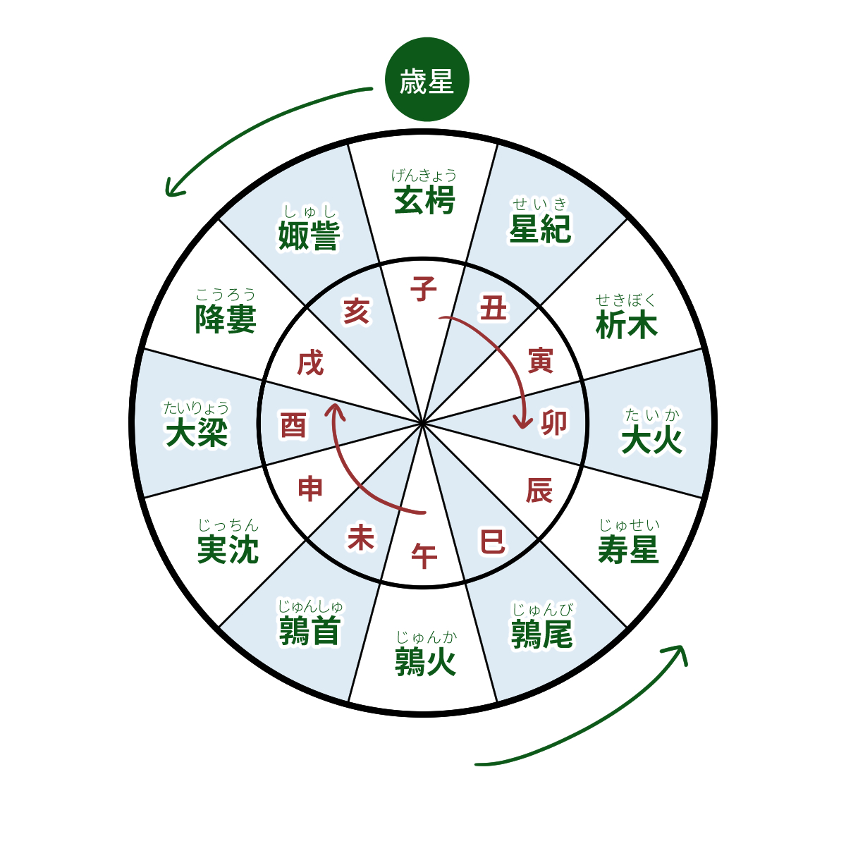 時計回りの十二辰と反時計回りの歳星さんが混在しててこれはちょっとよろしくない。